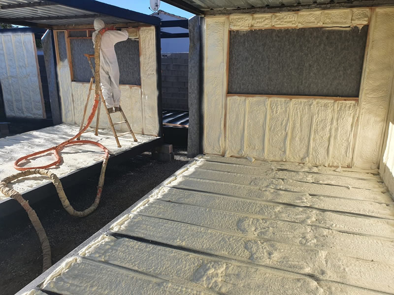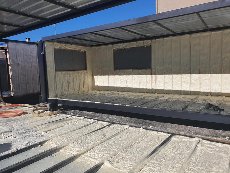 Isolation de modules métalliques pour la construction de logements de tourisme.