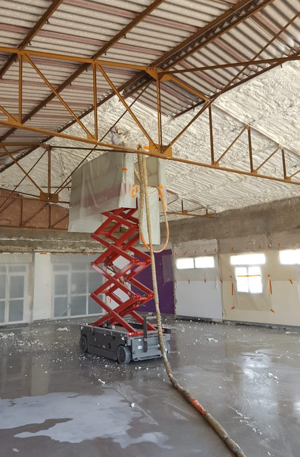 Isolation par mousse polyuréthane projet, nous avons appliqué une épaisseur de 150mm sur une surface de 460m2.