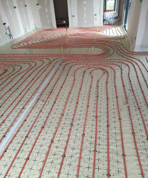 pose des tuyaux de plancher chauffant, directement sur notre mousse projetée